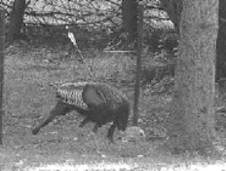 Following turkey hunting season, one of our members who is a backyard naturalist and nature photographer called Wildlife Watch because she was distressed over seeing one of “her” flock with an arrow in his wing and body.